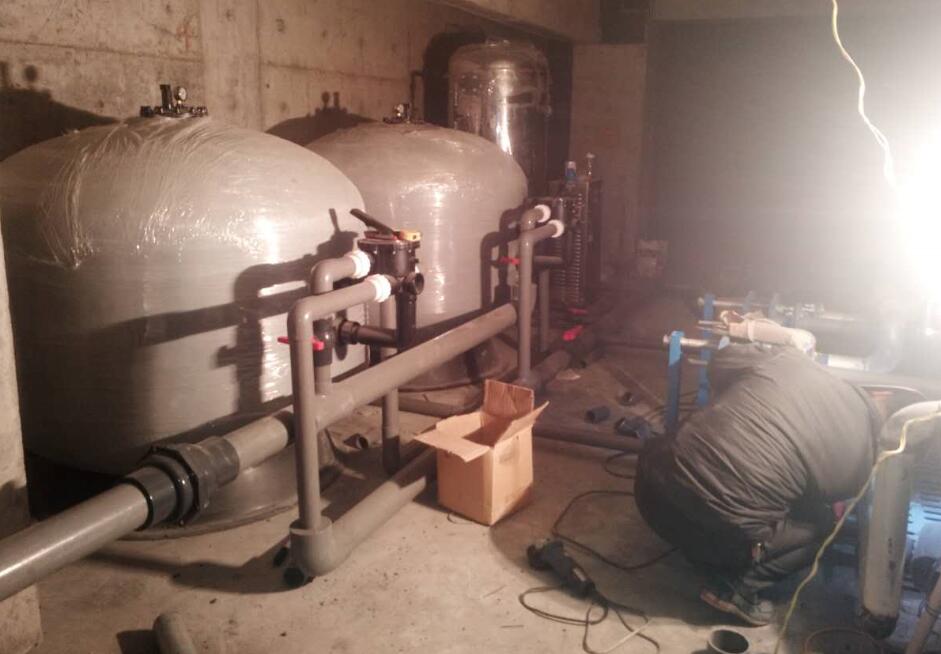 主要設(shè)備:亞士圖沙缸過濾器、比美泳池專用泵、金濤水質(zhì)監(jiān)測儀、藍白計量泵、新力板式換熱器、不銹鋼均衡水箱