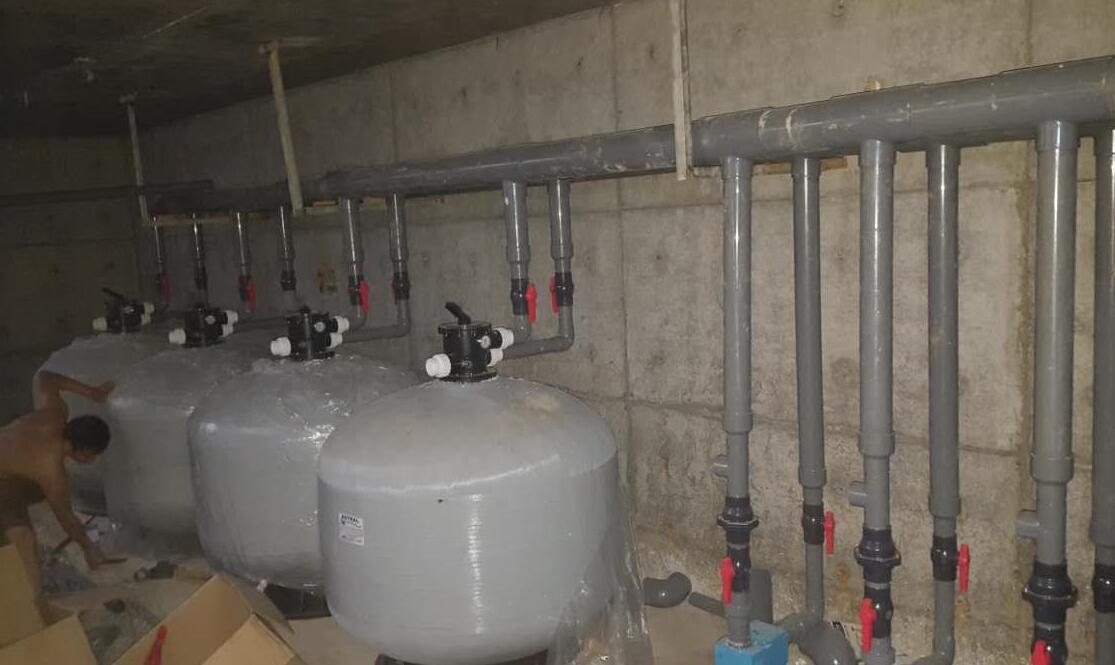 主要設(shè)備:亞士圖沙缸過(guò)濾器、意大利科沛達(dá)泳池專用泵、、金濤水質(zhì)監(jiān)測(cè)儀、藍(lán)白計(jì)量泵、新力板式換熱器