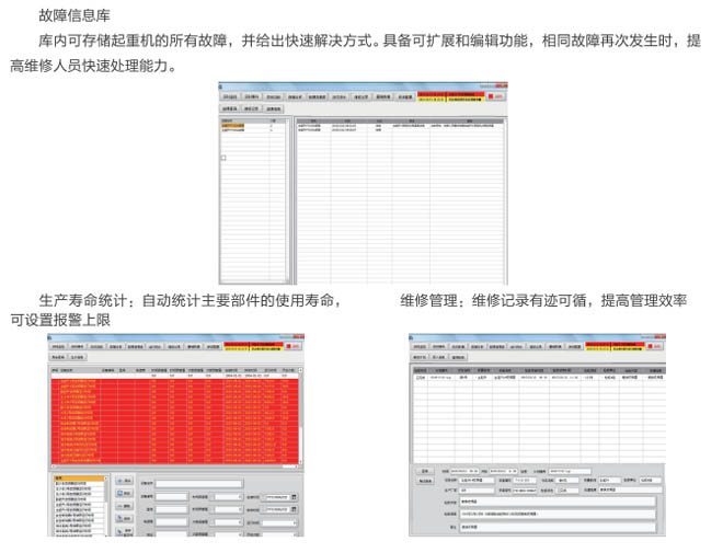 AGF系列起重機械安全監(jiān)控管理系統(tǒng)是我公司自主開發(fā)研制的產(chǎn)品,按照國質檢特聯(lián)【2011】137號文件的要求,嚴格執(zhí)行國標:GB/T 28264-2017生產(chǎn),廣泛用于各行業(yè)大型起重設備機械、提升機、架橋機、港機、工程機械等,系統(tǒng)是為各種起重機的運行監(jiān)視、診斷分析、設備預警與檢修維護而搭建的信息系統(tǒng)管理平臺。系統(tǒng)實時記錄起重機的運行參數(shù)、操作記錄,當滿足故障條件和設置預警值時,系統(tǒng)及時提醒和記錄各種事件信息,為起重機的操作人員和維護人員提供實時的、詳盡的歷史數(shù)據(jù)和分析報表。起重機安全監(jiān)控管理系統(tǒng)具有可靠穩(wěn)定性、靈活交互性、便捷易用性,是集實時監(jiān)控﹑故障報警﹑數(shù)據(jù)登錄﹑設備維護﹑運行統(tǒng)計于一體的現(xiàn)代起重機綜合信息管理平臺。