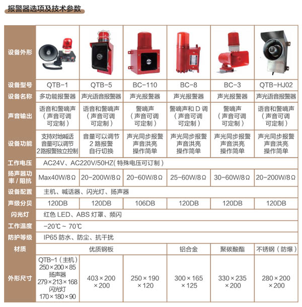 報警器系列產(chǎn)品是LED閃光燈和擴音喇叭同時示警的設備,具有高亮度閃光、響亮音頻報警功能,廣泛用于冶金鋼鐵、港口碼頭、化工、電力、煤礦礦山、工程機械、橋梁隧道等行業(yè)設備及場所,我公司致力于智能聲光報警設備的研發(fā)與制造,采用先進的聲光控制技術內(nèi)置語音IC芯片,滿足不同領域的需求,產(chǎn)品具有重量輕、防水、防塵?拐、抗干擾、使用簡單等優(yōu)點,針對不同生產(chǎn)場所環(huán)境和設備開發(fā)的系列產(chǎn)品有:多功能起吊報警器、聲光報警器、語音聲光報警器、防爆報警器、電子蜂鳴器等